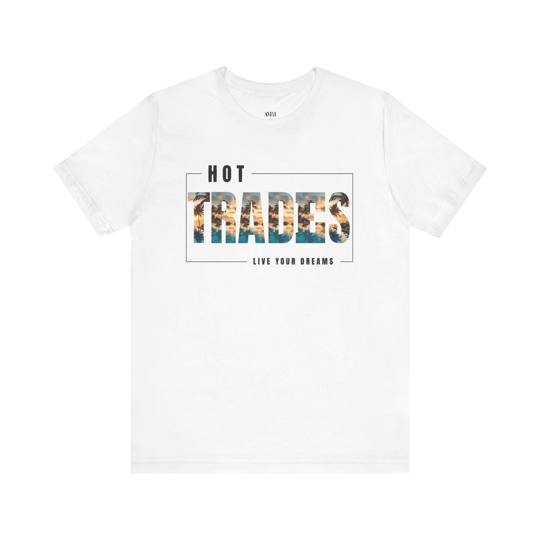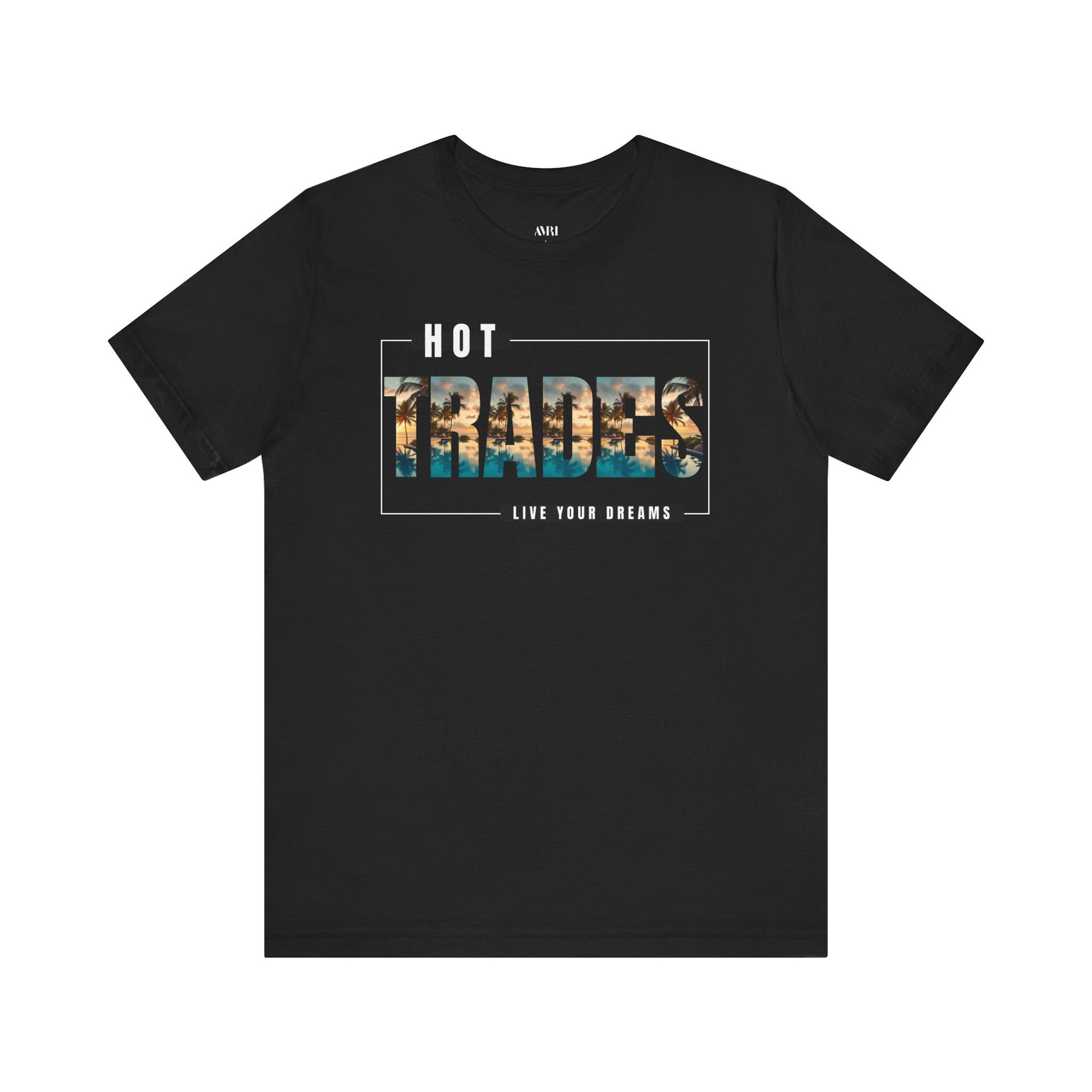 Make every trade feel like a tropical getaway with the Paradise Tee. Featuring bold “HOT TRADES” lettering filled with vibrant palm tree and sunset imagery, this tee blends streetwear vibes with trader grit. The sleek boxed layout and LIVE YOUR DREAMS tagline make it perfect for entrepreneurs, traders, and anyone chasing big moves. A statement piece for both the grind and the glow-up.