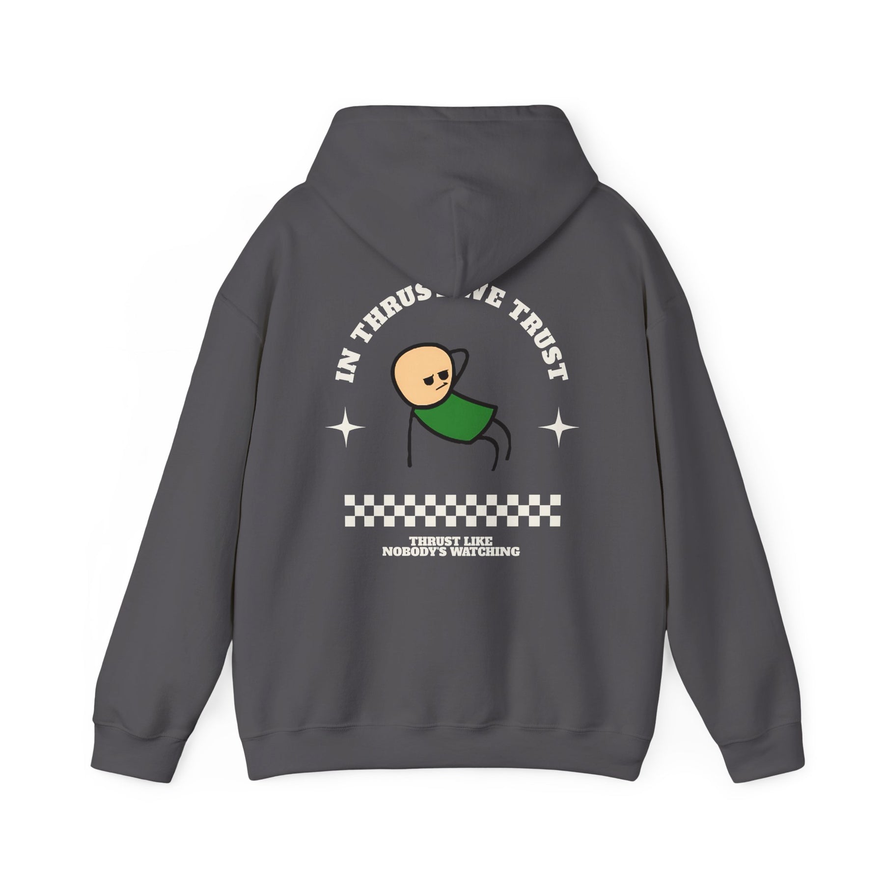 Get ready to shake up the silence with Thrust Issues — the hoodie that turns awkward energy into absolute confidence. Featuring a bold cartoon figure mid-thrust and unapologetic text that reads “In Thrust We Trust” and “Thrust Like Nobody’s Watching,” this shirt is equal parts chaotic and iconic. Finished with racing checks and retro sparkles, it’s made for those who don’t take life too seriously — but take their thrusting very seriously. Perfect for parties, festivals, or just reminding the world that movement is a mindset.