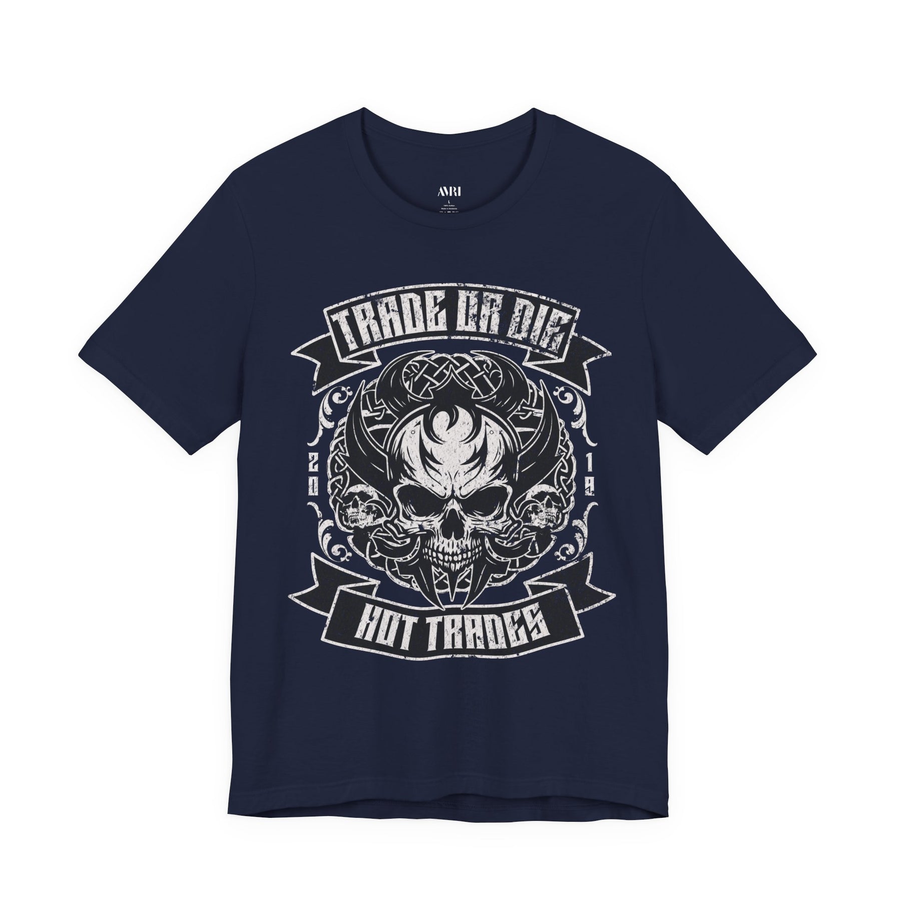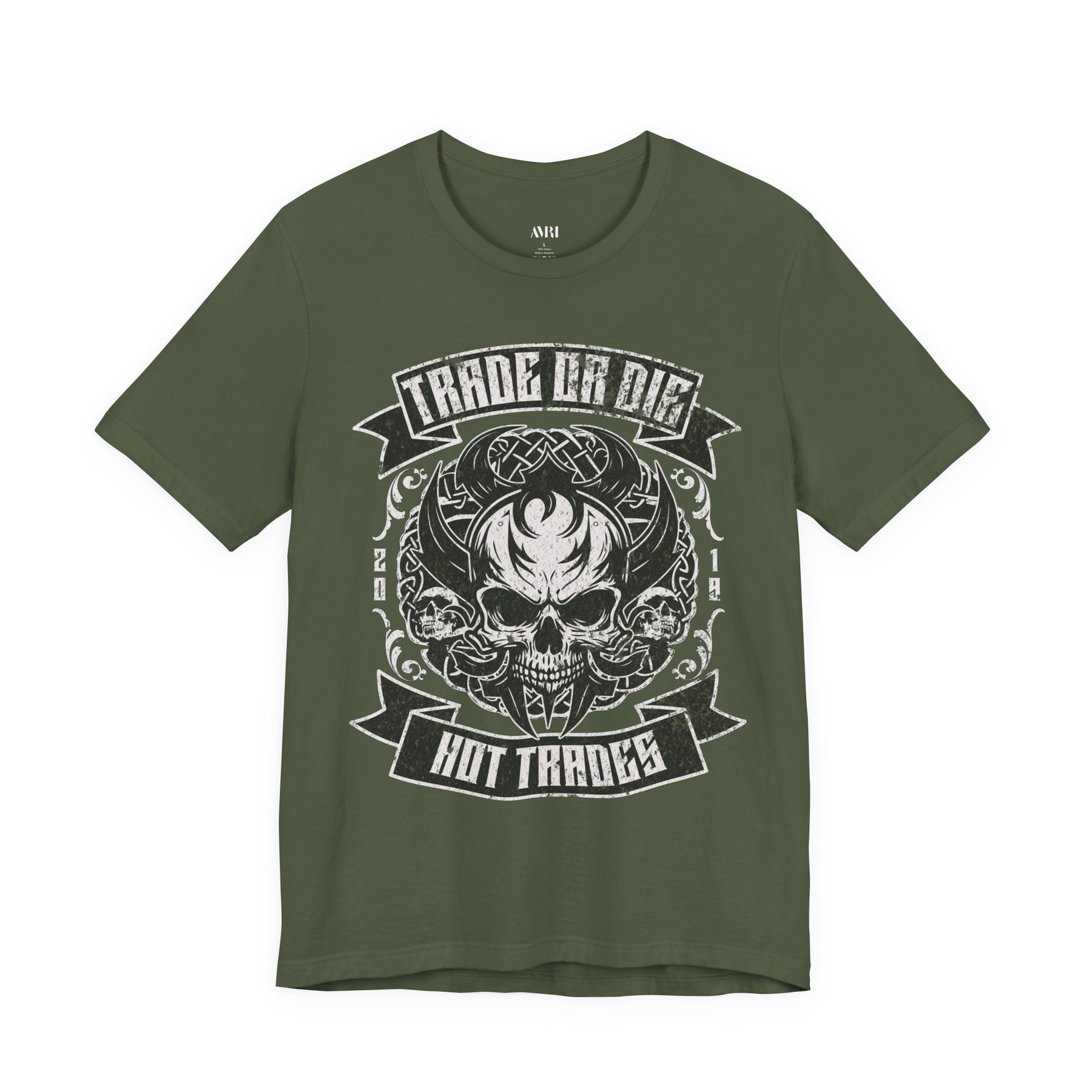This isn’t just a shirt — it’s a warning. The TRADE OR DIE: HOT TRADES EDITION is for the ones who live in the red zone, chase momentum like warhounds, and turn volatility into victory. Featuring a distressed skull crest and gothic war banners, this piece blends rebellion and precision like a sniper in the stock market. For those who don’t just enter trades — they ignite them.
