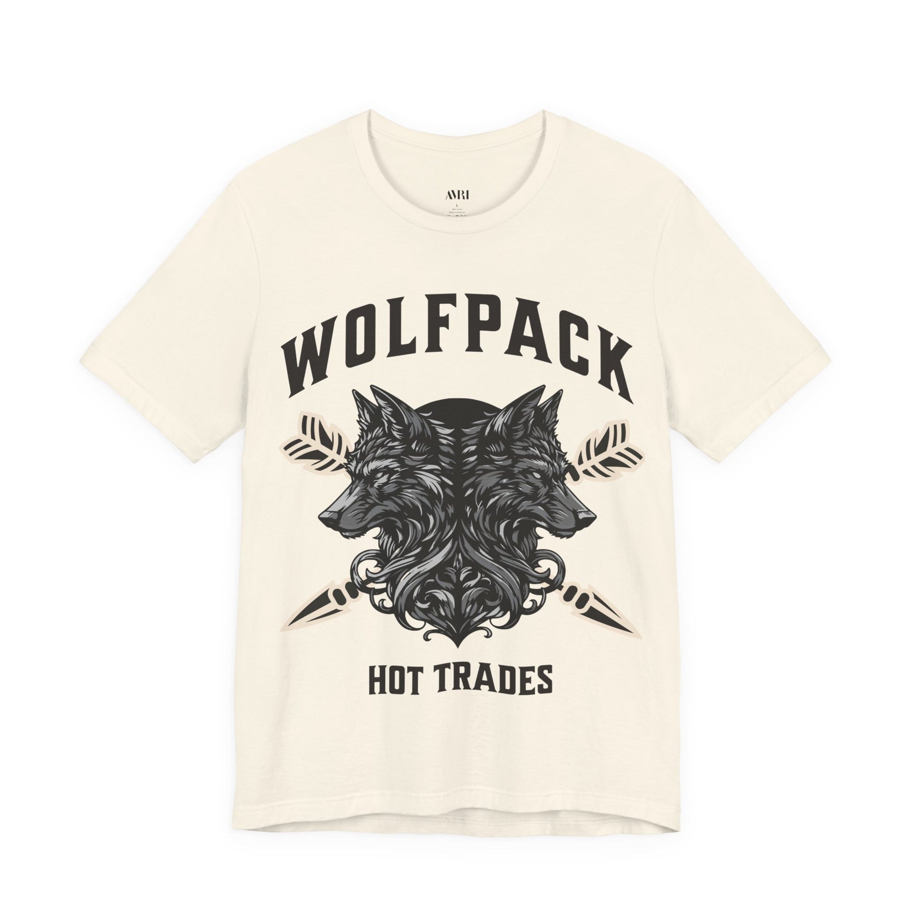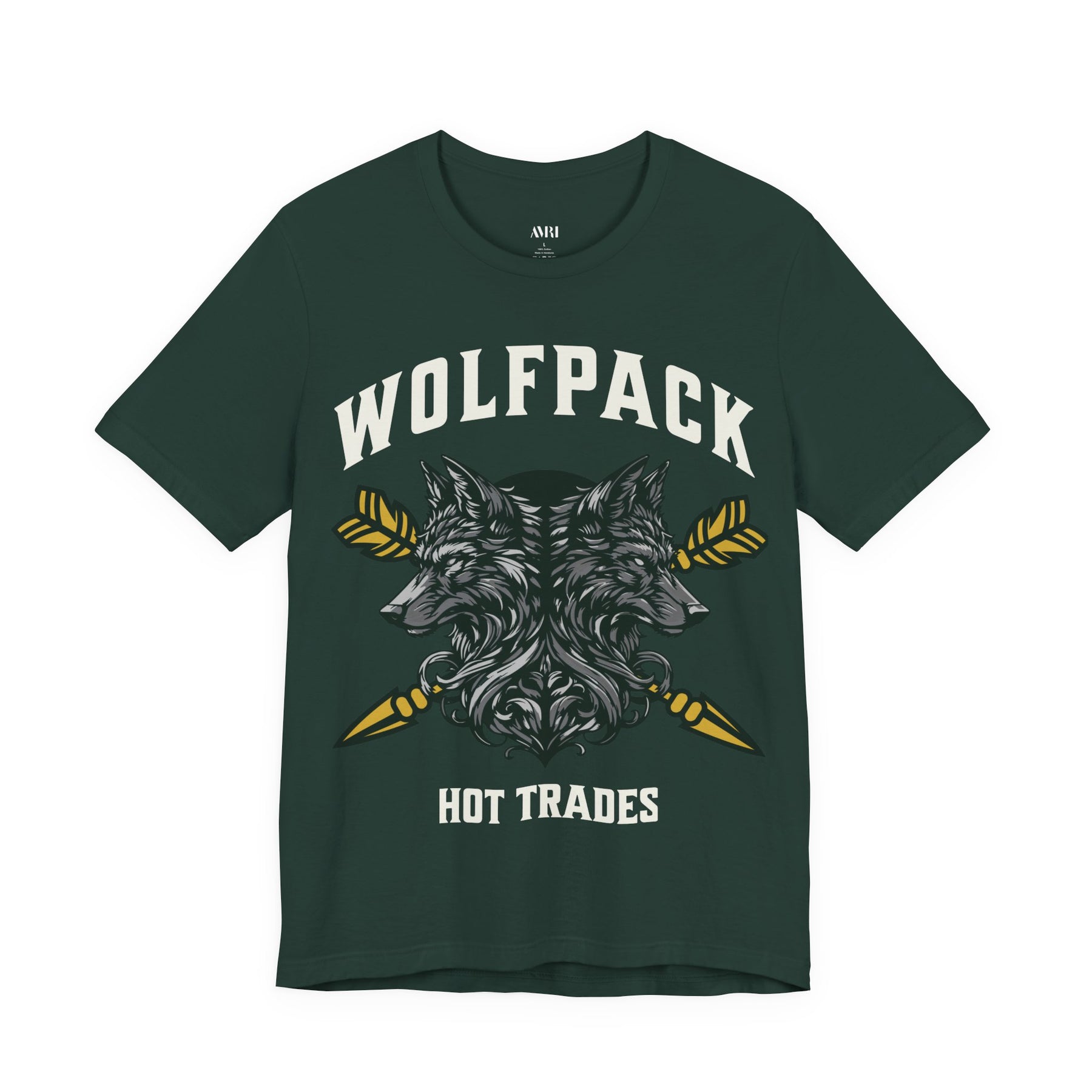 Above them, “WOLFPACK” crowns the design in bold collegiate lettering, representing loyalty to the trading tribe. Below, “HOT TRADES” anchors the image — the call sign of those who thrive in chaos and chase profit with precision.