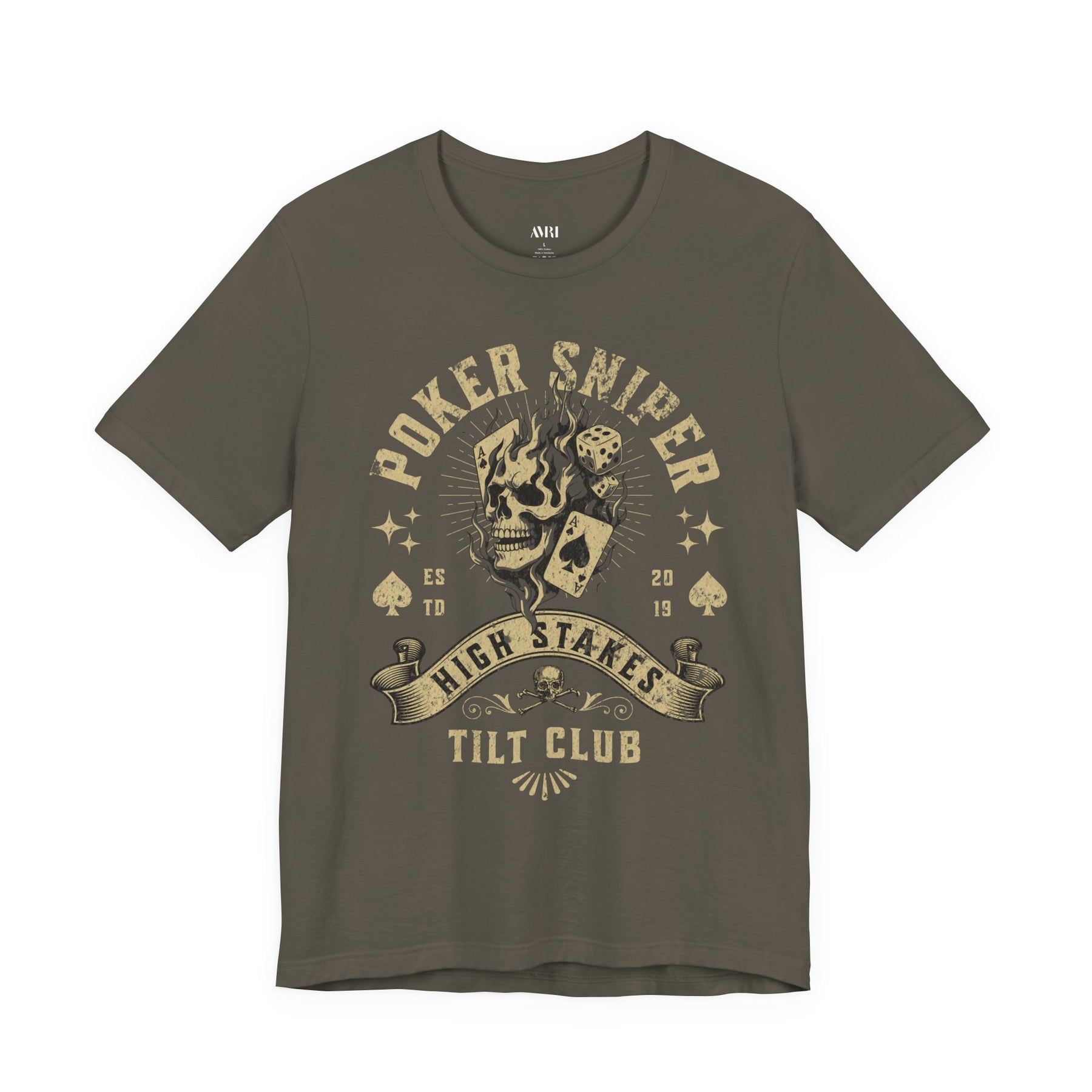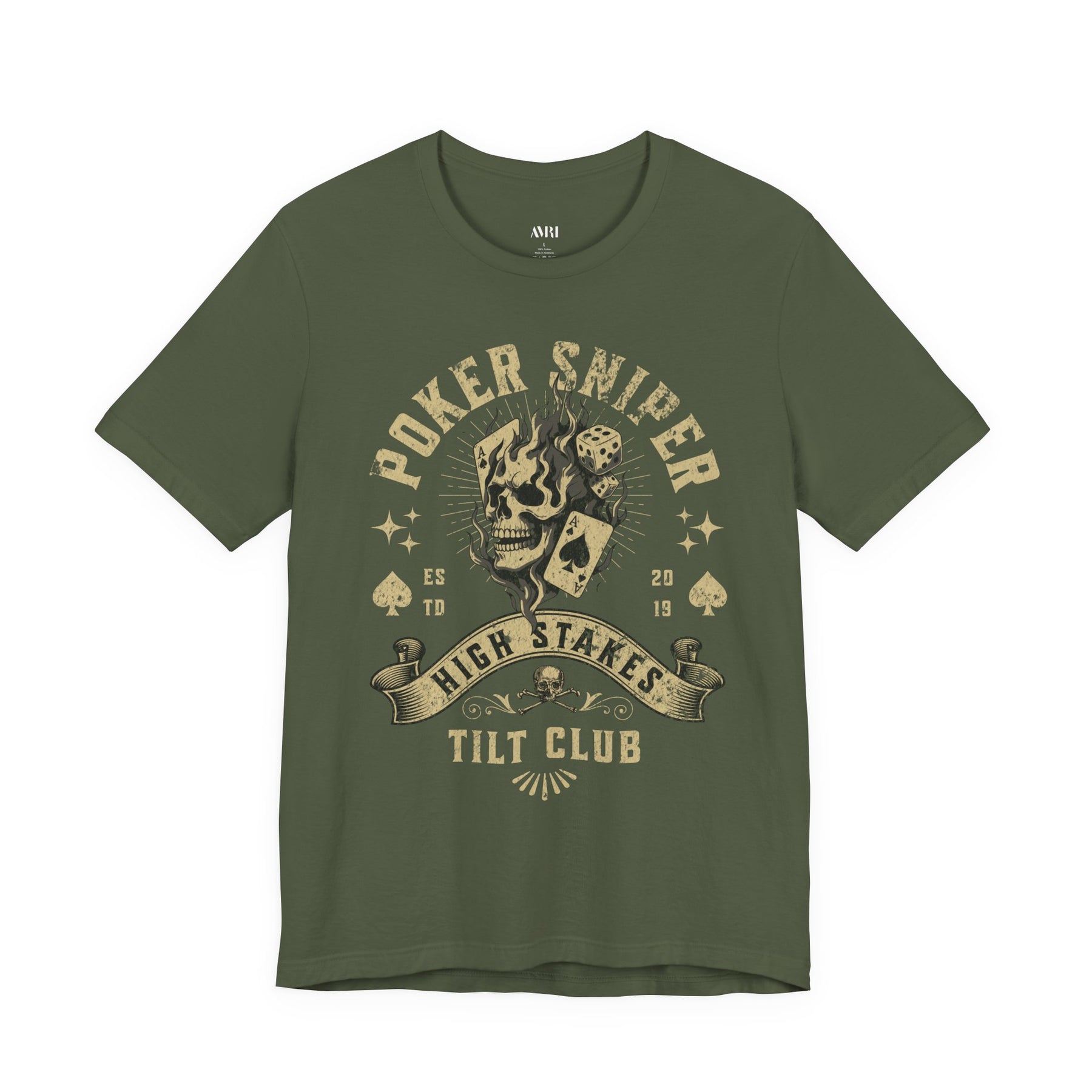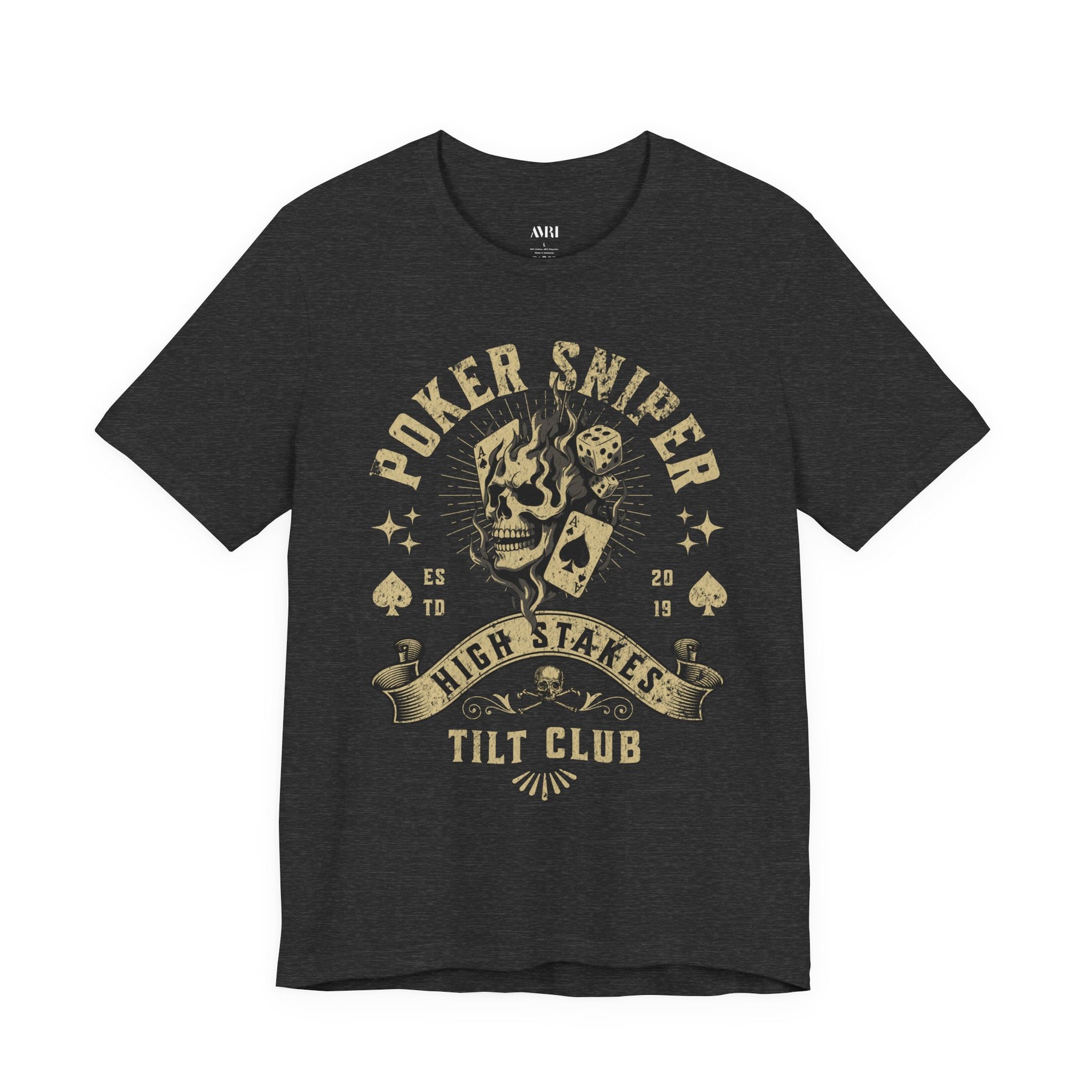 Where instinct meets execution. Poker Sniper captures the mentality of a killer behind the cards — a cold-blooded tactician who reads opponents like targets and strikes only once. The flaming skull clutching an ace and die symbolizes fate burned away by precision — luck replaced by lethal focus.